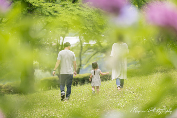 7月に入って暑い最中ですが、まだ若干暑さが落ち着いてる朝のうちに、お家の近くの公園でマタニティFamily撮影をしました。ちょうど紫陽花があったので紫陽花も一緒に☆