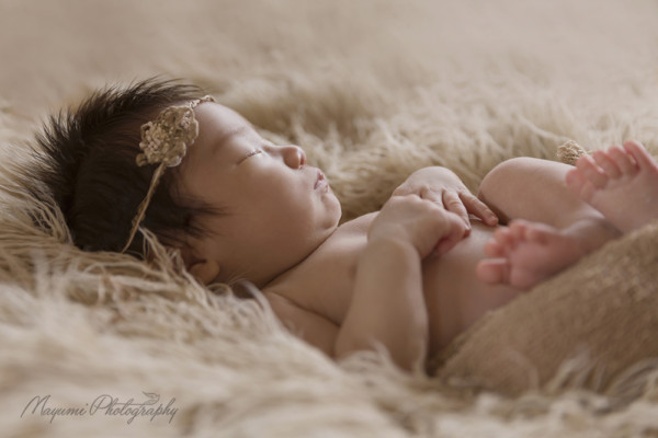 始めの方は眠りが浅かった赤ちゃんですが、後半にぐっすり眠ってくれてうつ伏せのポーズも撮影することができました。