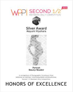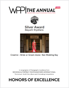 アメリカで当時最大級と言われていたウェディング&ポートレートのコンベンション(WPPI)のコンペティションで受賞し「技術・創造性・表現力の面でフォトグラファーとしてプロフェッショナルとしての評価」を受けています。